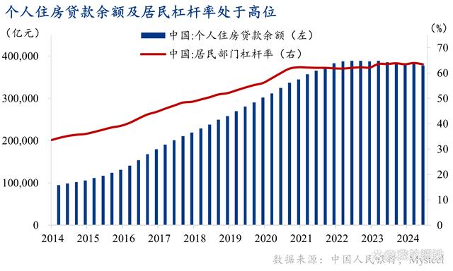房產(chǎn)在居民資產(chǎn)中占比較高,約占家庭總資產(chǎn)的三分之二,房價(jià)下行必然導(dǎo)致居民資產(chǎn)縮水,然而房貸償還壓力依然較大。截至2024年二季度,居民個(gè)人住房貸款余額仍有37.8萬億元,杠桿率徘徊在63.5%的高位。居民收入優(yōu)先償債,可支配收入減少,消費(fèi)自然下滑。